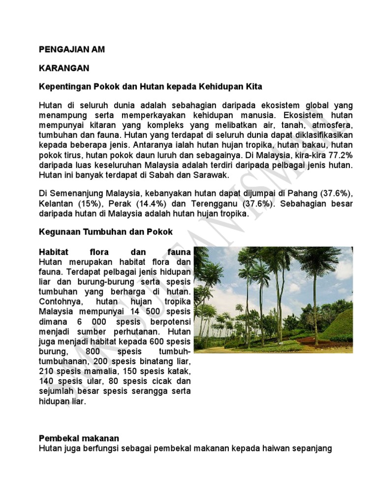 Kepentingan Pokok Dan Hutan Kepada Kehidupan Kita Pra U 2k2011 Pdf